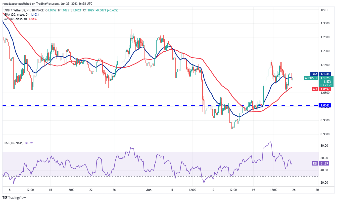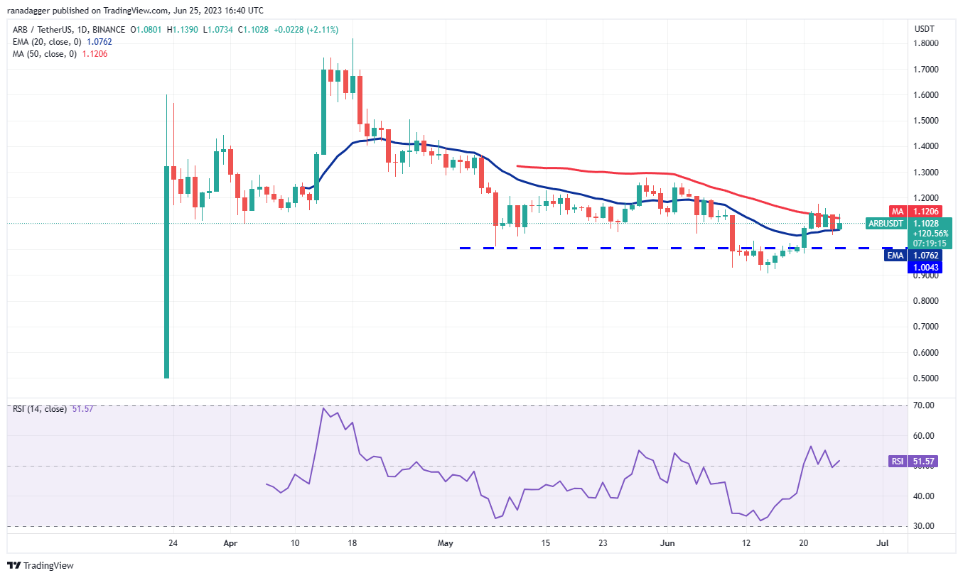 6月19日,Arbitrum (ARB)突破了1美元的破位,随后在6月20日大幅反弹。这表明对最近崩溃的拒绝。