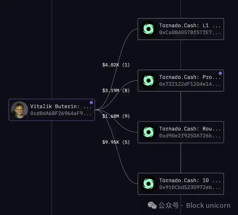 1. 价值 1, 290 美元的 Tornado. Cash 的 TORN 代币。这与 Vitalik 使用臭名昭著的混币器有关。他的 Arkham 个人资料显示了使用 Tornado Cash 进行多次资金转移的情况,据他说这些包括向乌克兰的捐款。