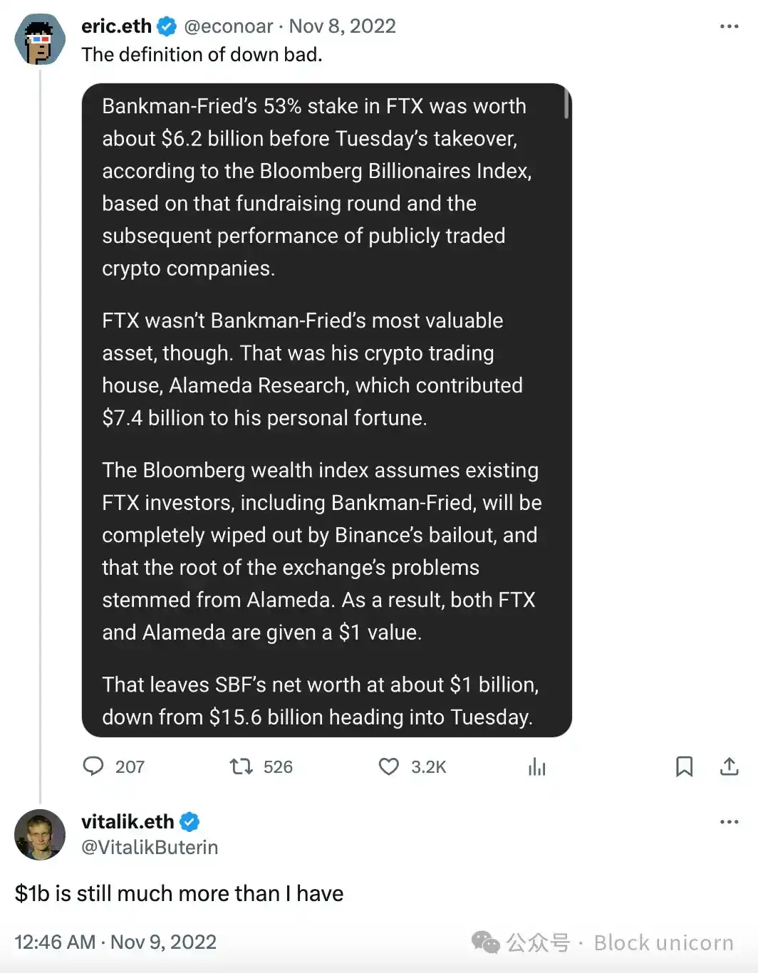 然而,加密货币熊市再次来袭,ETH 价格下跌。在 2021 年 12 月 31 日之前,Buterin 他持有 12 亿美元的 ETH,到了 2022 年 12 月 31 日,他的账户只有价值 3.0058 亿美元。自那时起,他已知的加密货币净资产反弹,截至撰写本文时达到 5.5 亿美元,当时 ETH 价格为 2, 234 美元(现在价格是 3395,约总资产为 8.375 美元)。