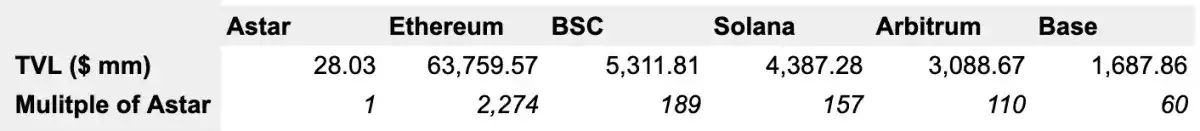 图 13:Astar 与更大的链条的以美元 TVL 对比