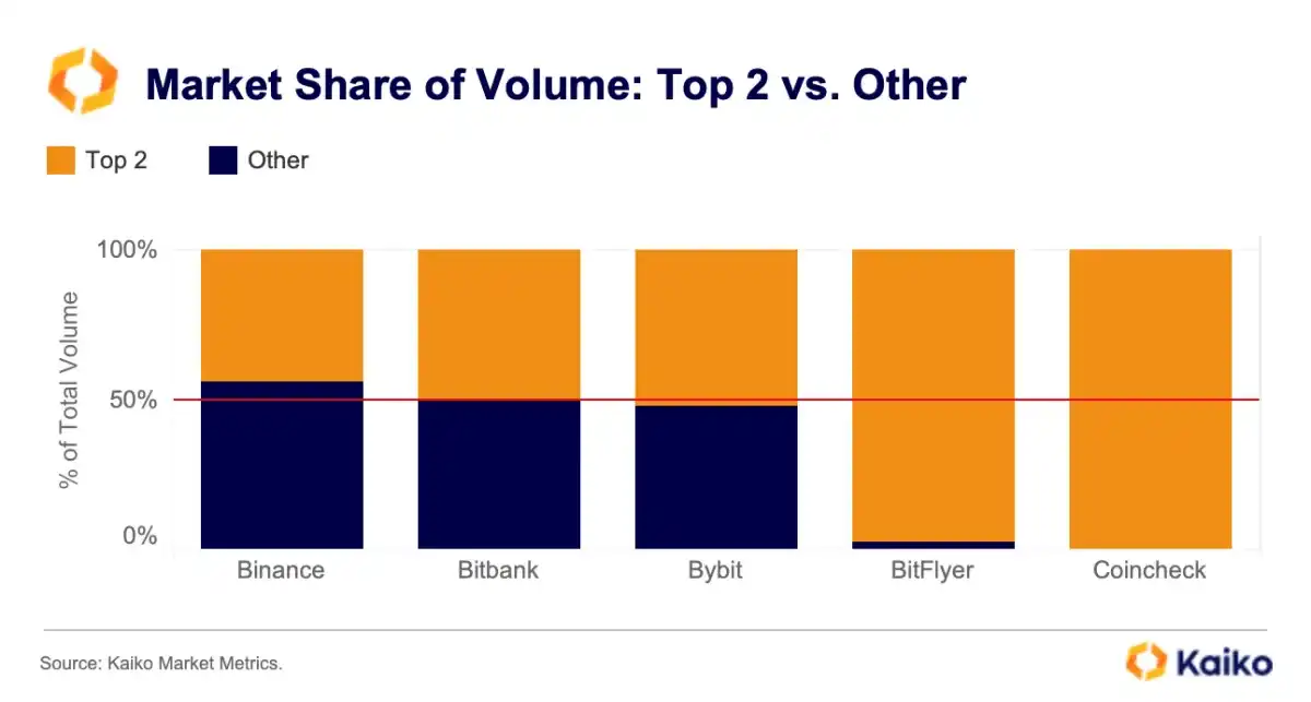 图 5:日本和国际 CEX 的前两大资产的市场份额。持续时间:2024 年迄今