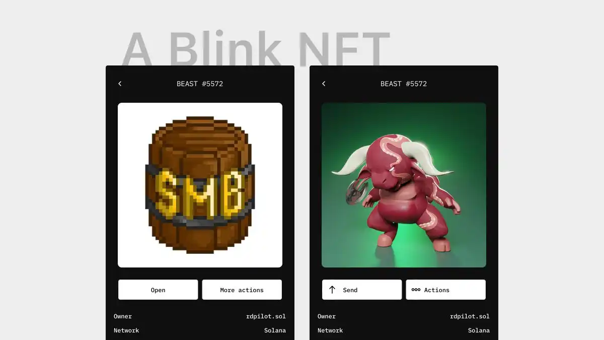 同样,Blinks 还允许直接在钱包内使用 NFT 进行简单的加密操作。直接从钱包界面发送、购买、出价和交易 NFT。