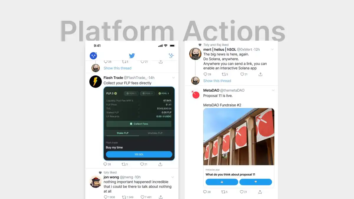 为了让加密原生平台与用户产生更多互动,可以直接在用户的 X feed 上发布他们想要执行的任何操作。例如: