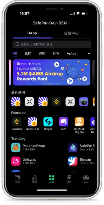AirDAO 和 SafePal 联合推出了独家空投奖励 Giftbox 活动,总奖池为 310 万枚 AMB 代币,前 5000 个完成任务的用户可以平分奖励,每人获得 610 枚 AMB 的代币,本次活动截止时间为北京时间 7 月 10 日下午 6 点。这篇文章将手把手教大家如何完成任务并领取奖励。