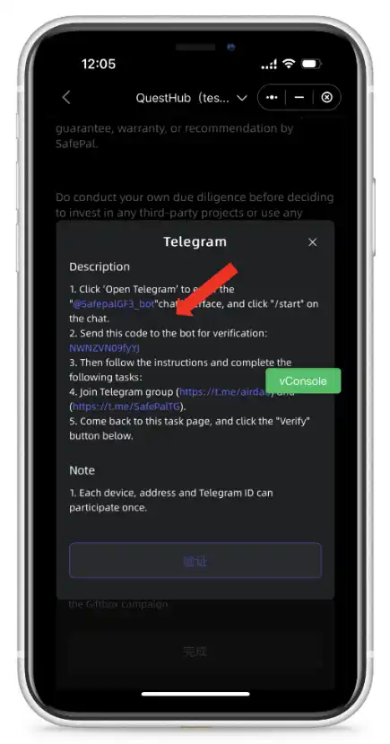 1)在活动 Telegram 任务页面,复制你的唯一入群验证码。