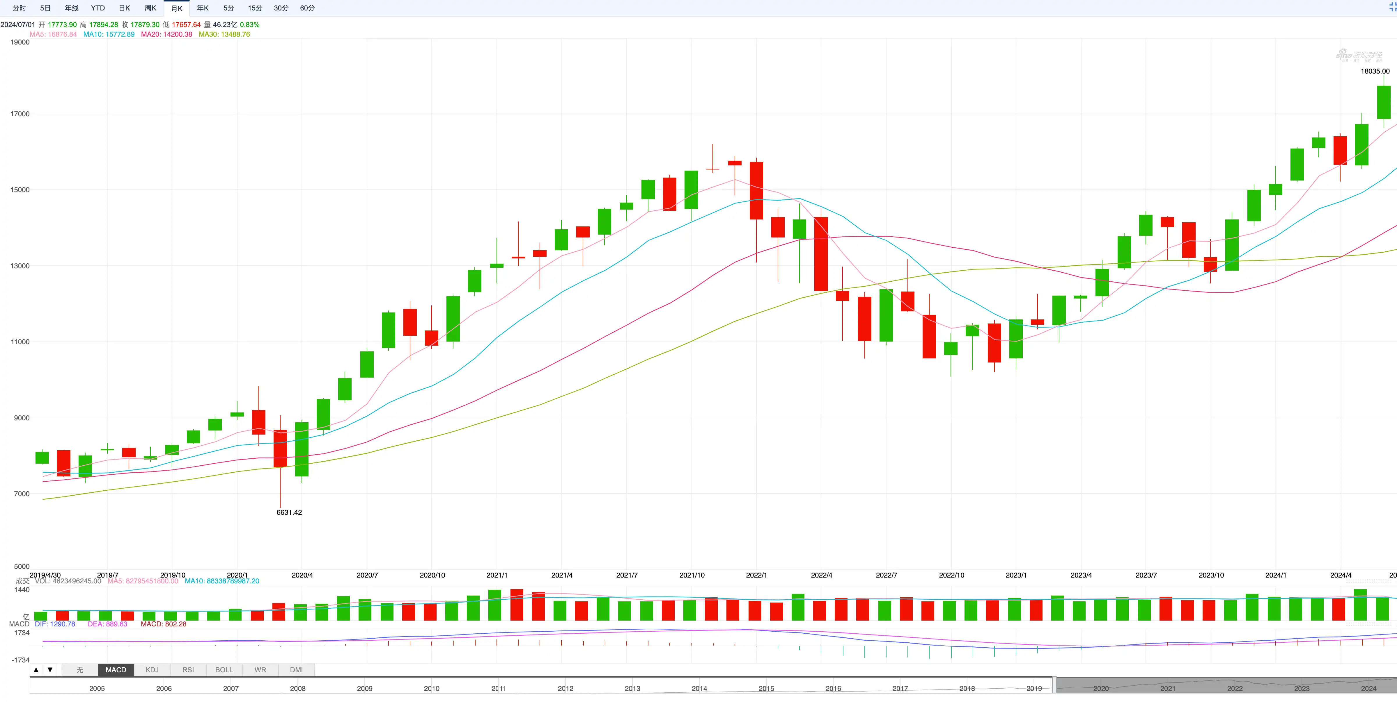 6 月,纳指强势上涨 5.96%,再创历史新高