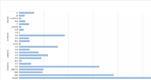 我们根据获投项目的业务类型、服务对象、商业模式等维度将披露融资的所有项目划进 5 大赛道:基础设施、应用、技术服务商、金融服务商和其他服务商。每个赛道下又分为不同的子板块包括 GameFi、DeFi、NFT、支付、钱包、DAO、Layer1、跨链等。