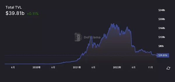 伴随着大盘的走低,DeFi 的基础数据全年几乎是一路下行。DeFi Llama 数据显示,截至 12 月 23 日锁定在全生态所有 DeFi 协议内的资产总价值“仅”剩 398.1 亿美元,距离去年岁末巅峰时的 1785.4 亿美元已缩水逾四分之三。