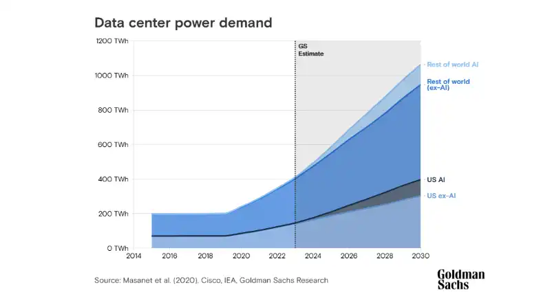 高盛预计 AI 将极大地增加电力需求