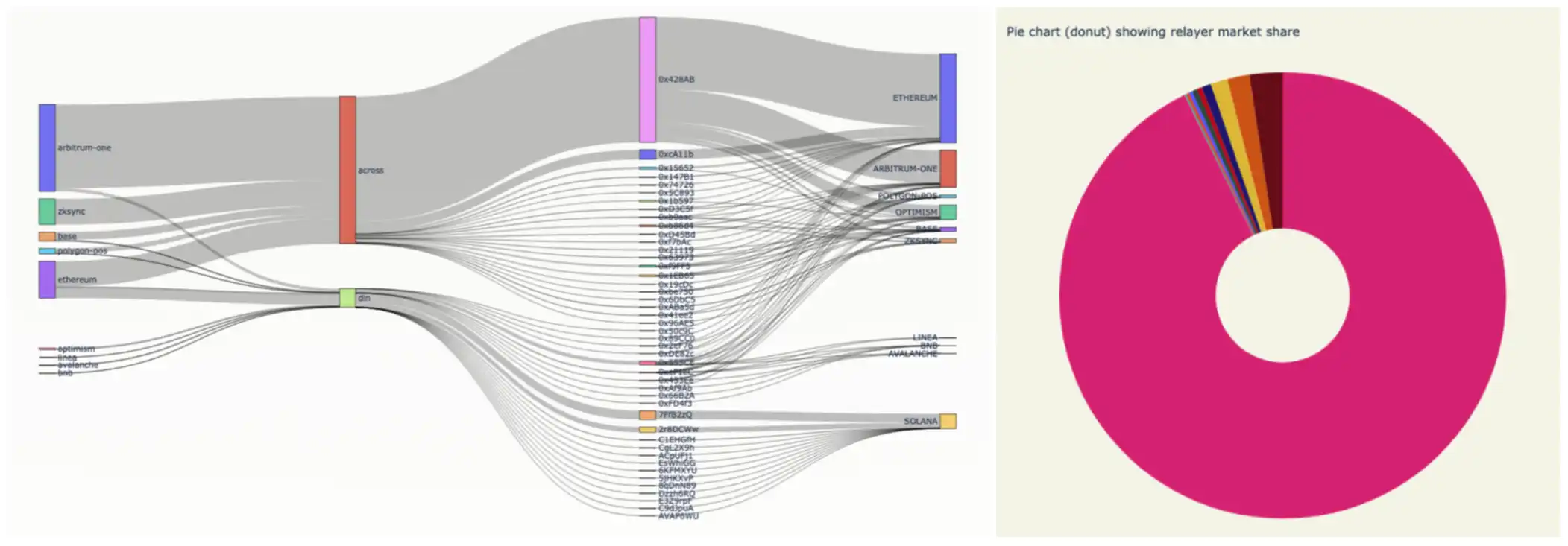 在上个月发表的一篇研究报告中,LI.FI 团队提到了当前意图跨链桥的中心化问题。报告以 Across、DLN 等当前主流意图跨链桥为研究案例,并发现在这些协议中,极少数 Solver 赢得了几乎所有的订单流,而这少部分 Solver 又通常由协议背后的团队运营。在 Across 这个案例中,团队运营的 Solver(Across 团队称之为 Relayer)更是占据了超 92% 以上的资金流。