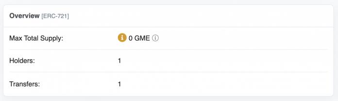 目前,细节并不多。唯一的信息是基于以太坊的智能合同地址。从代码中可以看出,该公司使用它ERC721代币标准创建了一个名字GME专属代币,但该代币目前总供应为0。