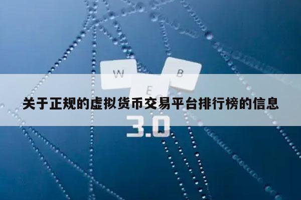 关于正规的虚拟货币交易平台排行榜的信息