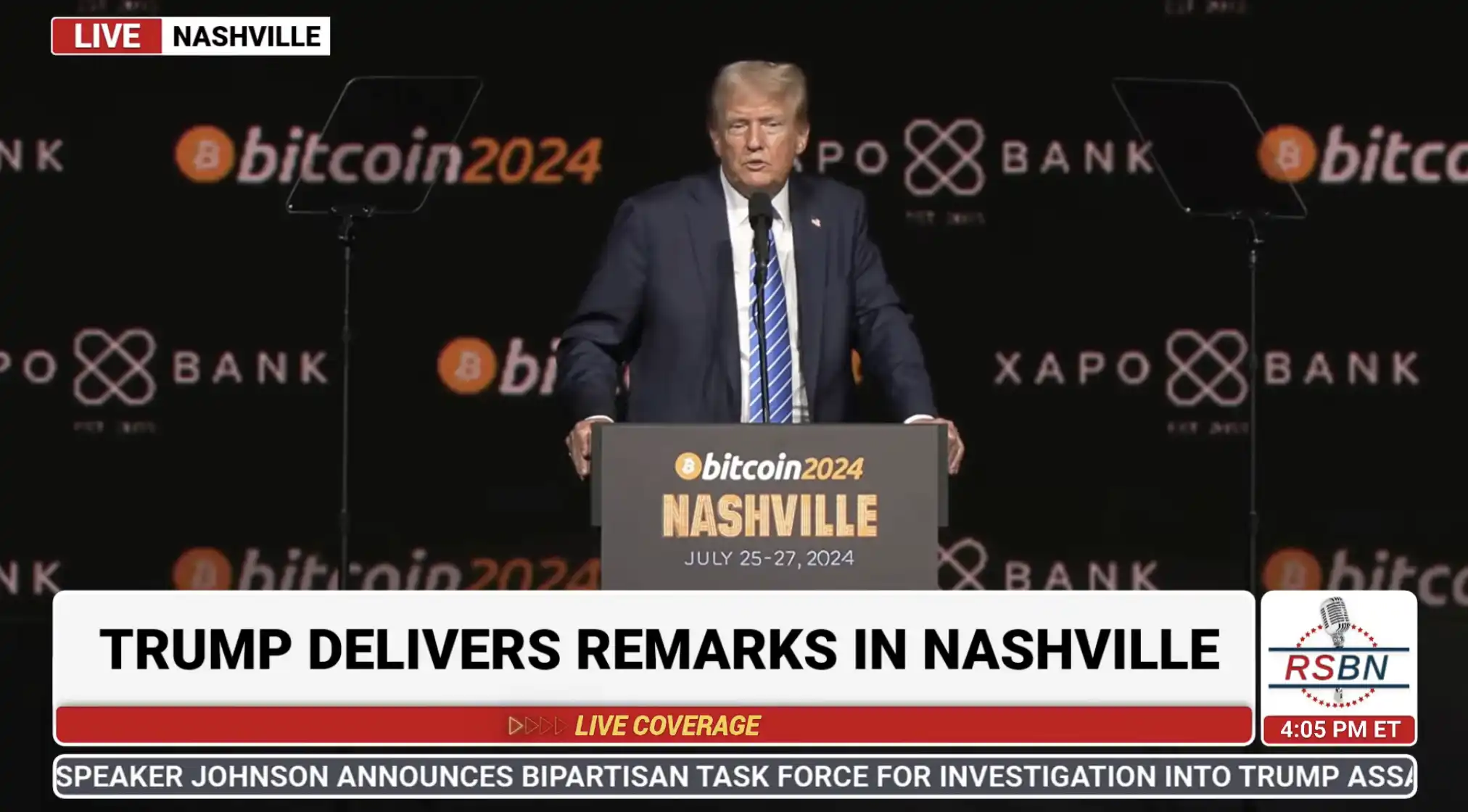 今日凌晨,在纳什维尔举行的比特币 2024 大会上,美国前总统特朗普现身并发表了近 1 小时的演讲。虽然比原定时间推迟了 1 个小时,现场几万观众在特朗普极具个人特色的演讲中依然情绪高亢。
