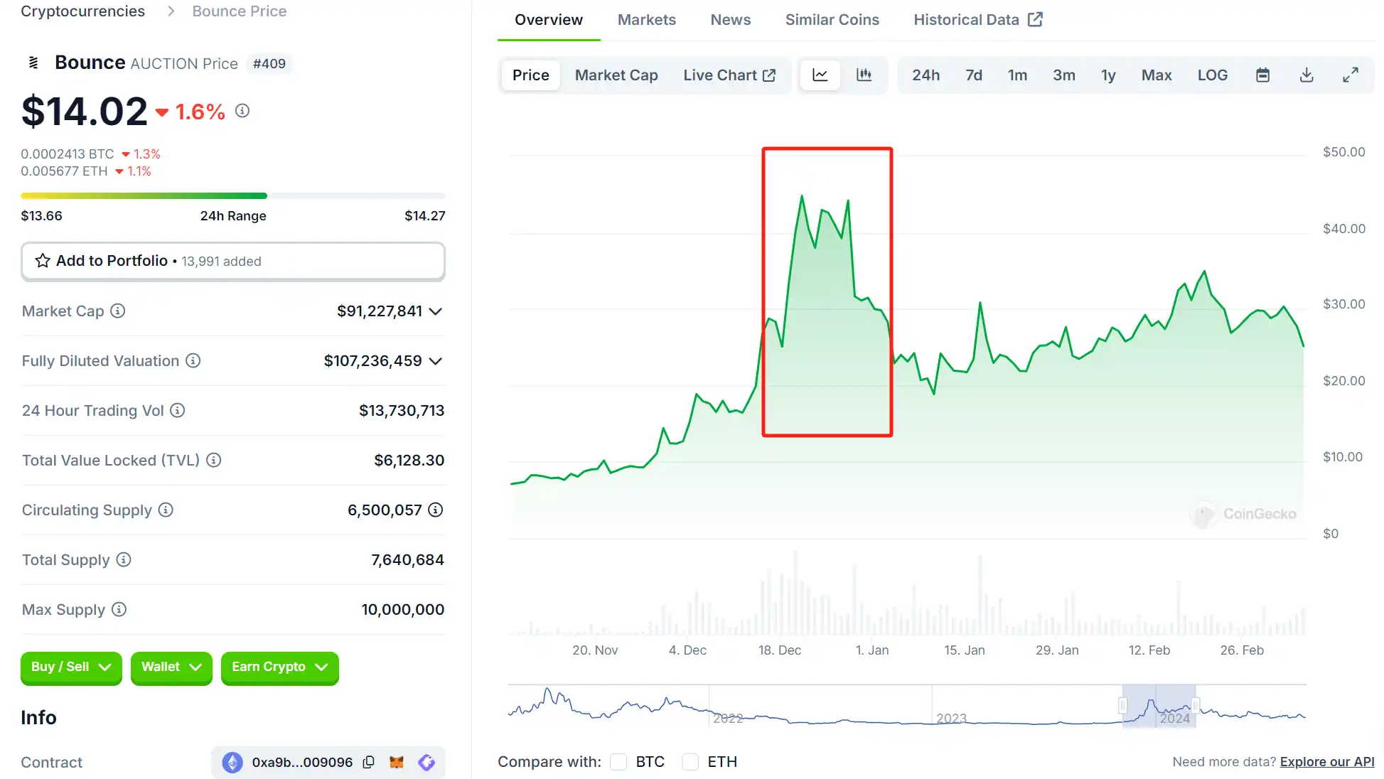 今年 3 月,曾有媒体对 15 个近一年品牌重塑后的代币价格走势进行了盘点,发现在品牌重塑后代币价格展现出较强走势,平均最高涨幅近 243.5%。如去中心化拍卖平台 Bounce Finance 在 2023 年 12 月,趁着比特币生态风头正劲之时,宣布品牌升级为 Bounce Brand,产品全线向比特币生态倾斜,而其效果也是十分显著,在改名后两周 AUCTION 最高涨幅达到 223%。不过「热点效应」更名带来的负作用,也随着比特币市场热度的褪去而浮现,改名带来的拉盘效应只维持了两周有余,币价就回落到改名前水平。