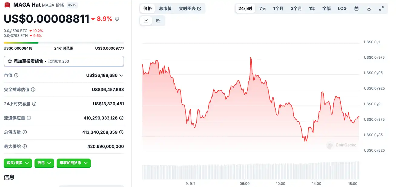 9 月 9 日代币波动情况,按交易量筛选并排列