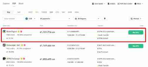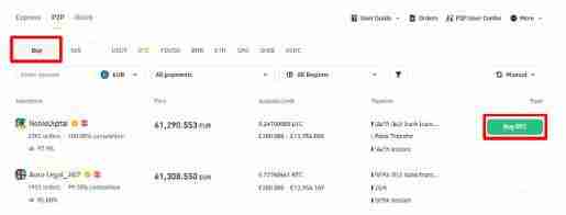2. 如果要下买单,请找到心仪的广告,然后点击购买按钮开始买币流程。