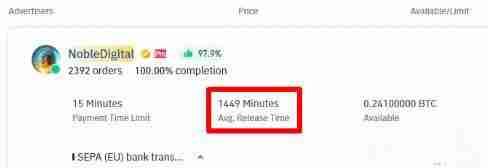 平均放行时间:卖方收到付款后放行加密货币的平均时间。您可点击用户昵称或广告,查看其平均放行间。