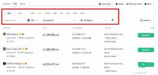 1. 浏览币安 C2C 上的广告,根据个人要求选择合适的交易。币安 C2C 提供多种筛选条件,可助力您轻松筛选出心仪交易。
