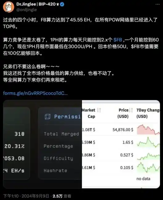 如果以这种计算方式来估计,只要 FB 价格坚挺在 10 USDT 以上,租赁算力开采 FB 头矿的玩家依然是可以盈利的。