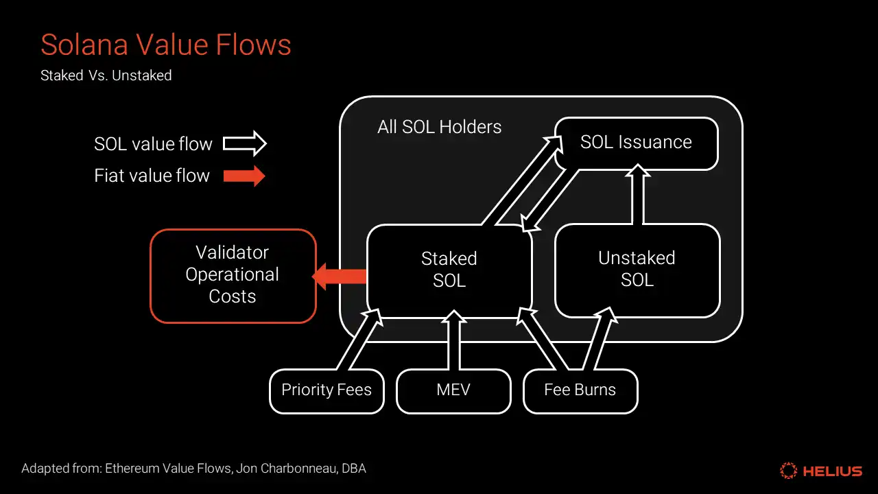 与通胀相关的唯一网络成本是价值从质押者流向验证者的一部分,这部分价值随后用于支付运营费用,如下图所示。