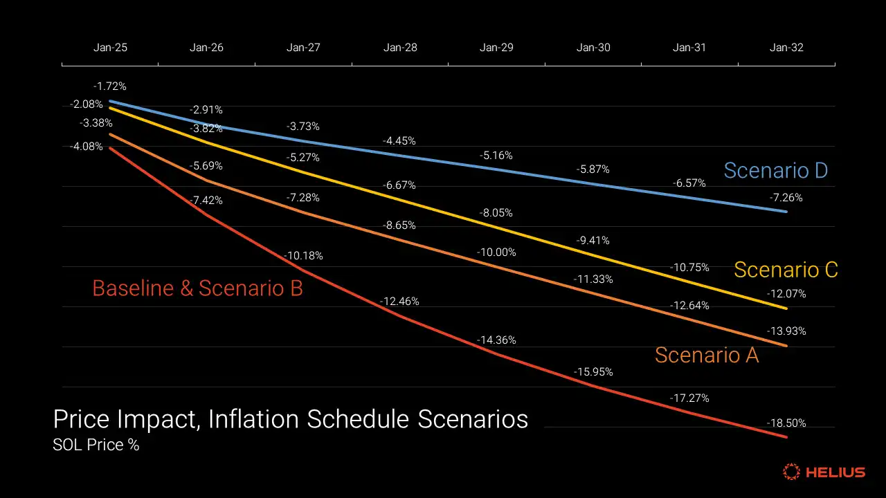 每个场景都旨在测试这些关键调整对整体通胀率的长期影响,帮助理解不同策略如何改变 SOL 的通胀动态。