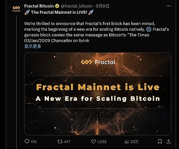 比特币生态日报(9.9)| Fractal主网上线后算力大增;Merlin上半年报告显示已成为比特币最大的L2