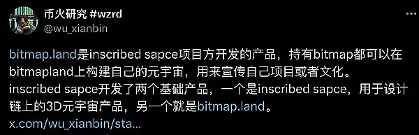 4.Bitmap 生态项目 Bitmap 生态包含大量的去中心化项目,分为直接持有 Bitmap NFT 与投资生态项目两种玩法。核心项目包括:——Bitmap game@BitmapTech:支持社交、挖矿和 NFT 质押的元宇宙平台——Bitmap land:允许用户构建自己的虚拟世界,展示项目或文化——Foxxi Bitverse:基于 Tap 协议的元宇宙射击游戏——PatoshiPunks:手绘 PFP 系列,已在 Bitmapland 上建立元宇宙体验