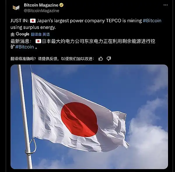 ● 日本最大的电力公司东京电力正在利用剩余能源进行挖矿 #Bitcoin。