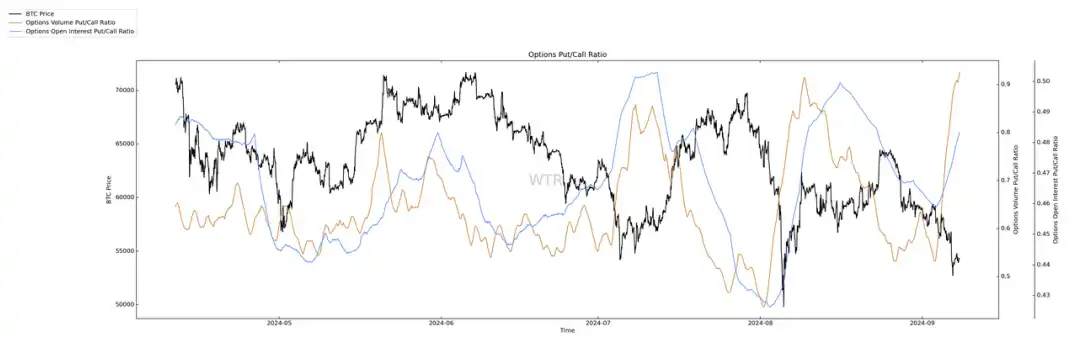 期权成交量,看跌期权比例均大量增加。