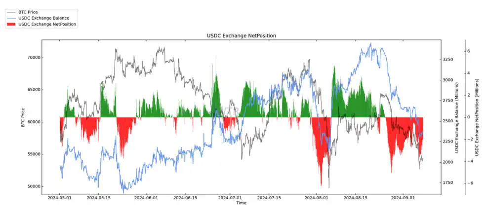 USDC 交易所净头寸大量流失。