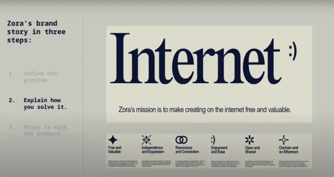 在与设计伙伴进行创意简报时,明确你想传达的品牌氛围和能量。如果你已经完成了品牌故事的定义工作,这将为设计工作提供很好的指导框架。比如,Zora 的品牌故事是关于让互联网创作变得免费且有价值,这为设计师提供了一个出色的创意简报。