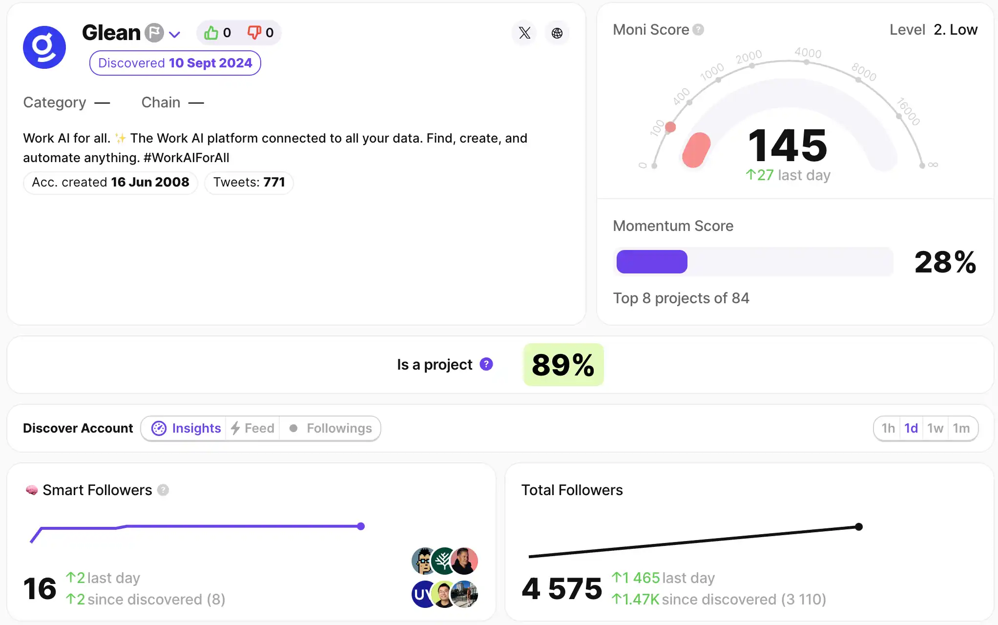 每日新项目或社区关注动态,按 X Alpha 帐号关注数量和增长筛选并排列