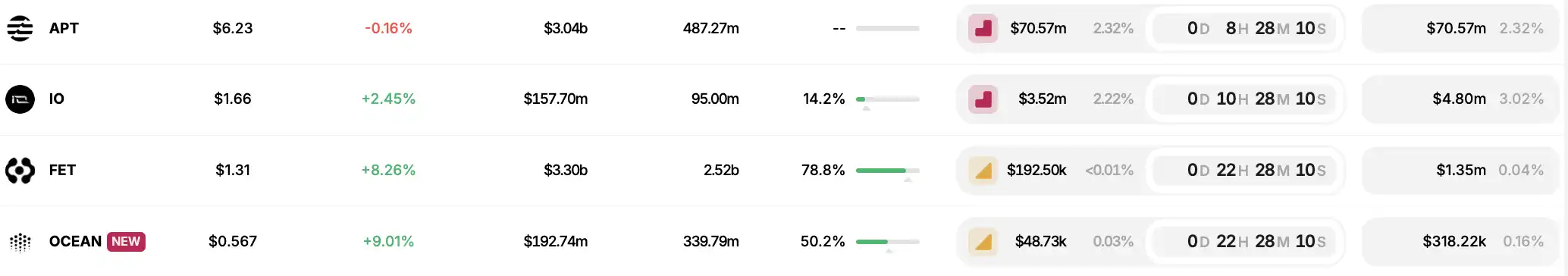 每日 meme 市场热点及资金动向,按交易量/市值比和 4h 盈利筛选并排列