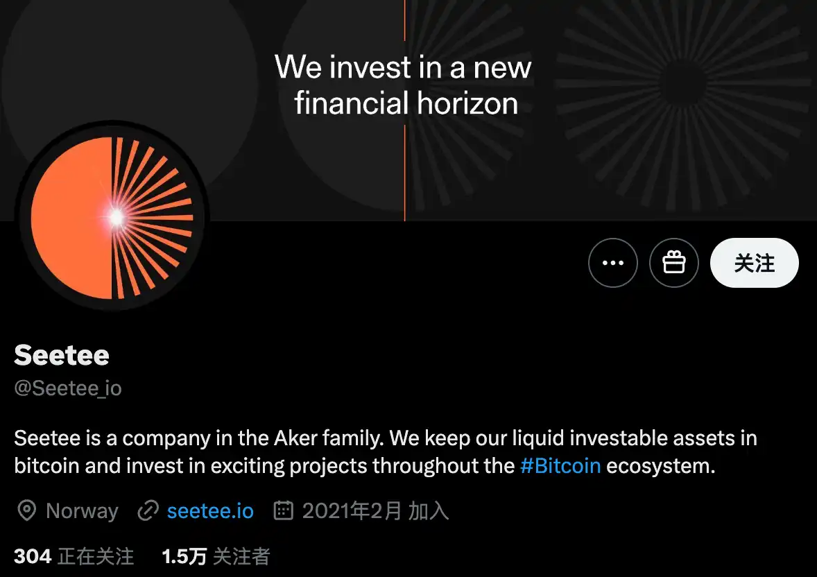 Seetee 是 Aker 家族的一家公司,我们将流动性可投资资产保留在比特币中,并投资于整个比特币生态系统中令人兴奋的项目。