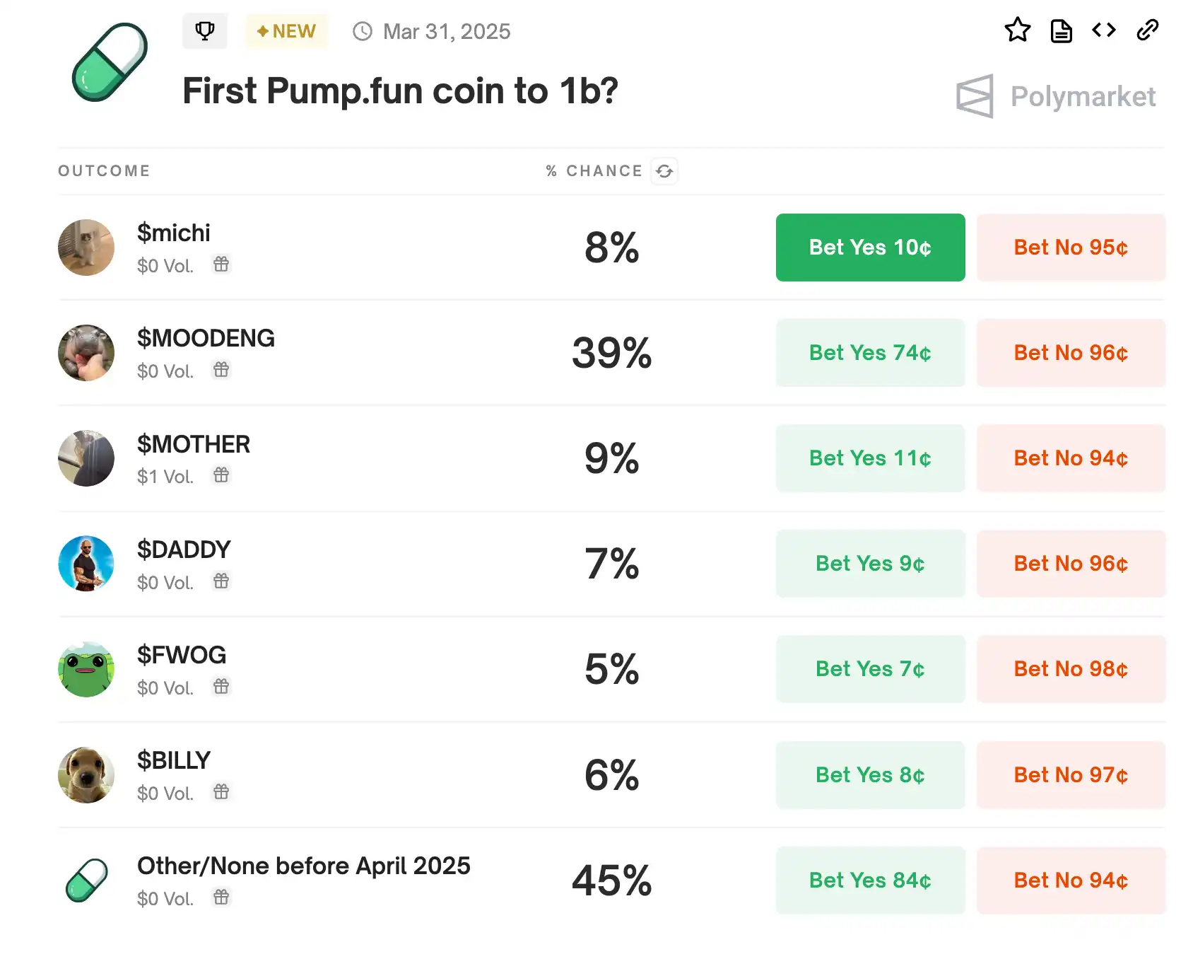 2.Pump.fun 上第一个市值到达 10 亿美金的 meme 币会是谁?
