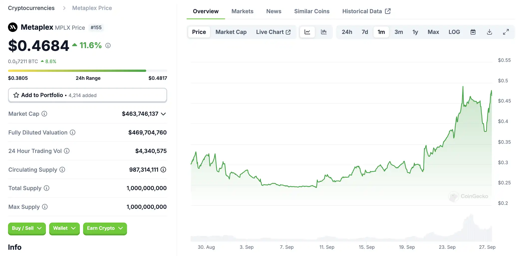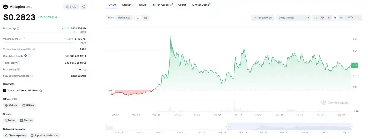 图 6:Metaplex 一年内的表现;来源:Coinmarketcap