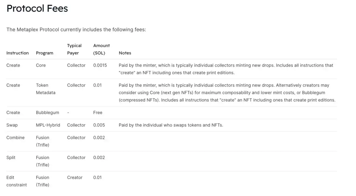 图 4:各项目协议费用明细;来源:Metaplex