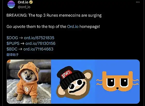 去为他们点赞,让他们登上 Ord.io 主页的顶部!其中 Pups 市值达到 520 万美金市值。