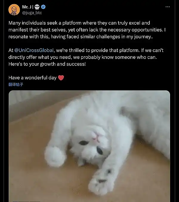 在 @UniCrossGlobal,我们很高兴能提供这个平台。祝我们成长和成功!祝你有美好的一天️ by @juga_btc