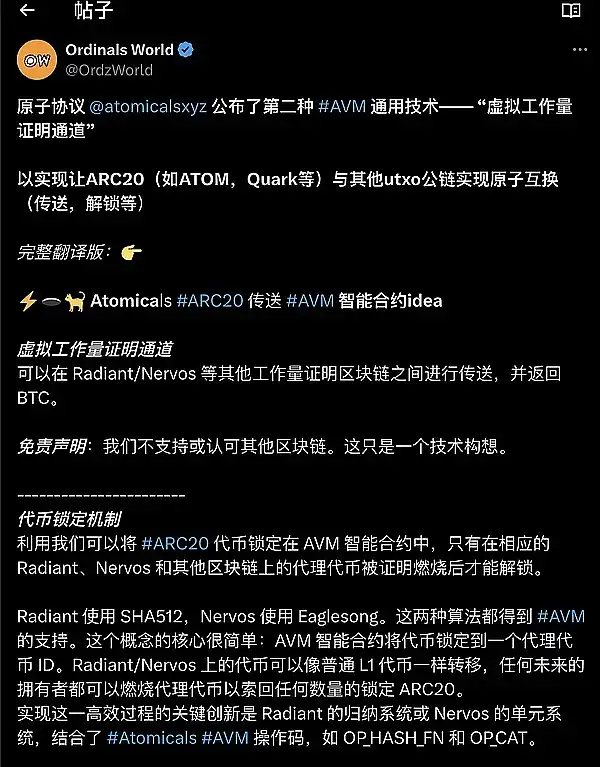 ● Arthur 最近隔三差五来个重磅炸弹,社区也在多方面高强度推进,这些天整个推特上 Atomicals 的声音都多起来了。来自 @100xants 的图文解读