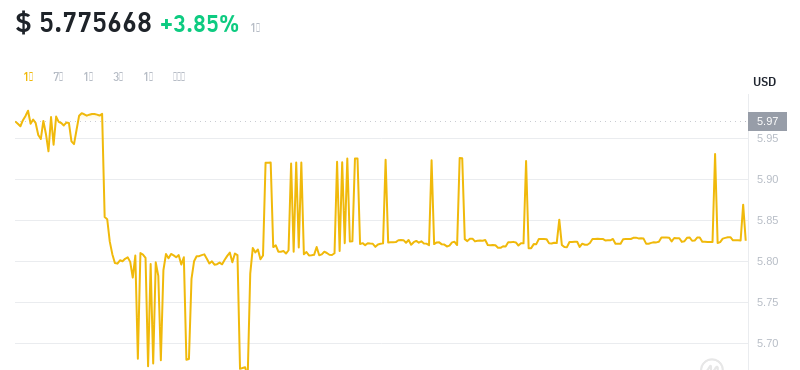 截至目前,UNUS SED LEO (LEO) 的交易价格为 5.82 美元,过去 24 小时的交易量为 29.9 万美元。