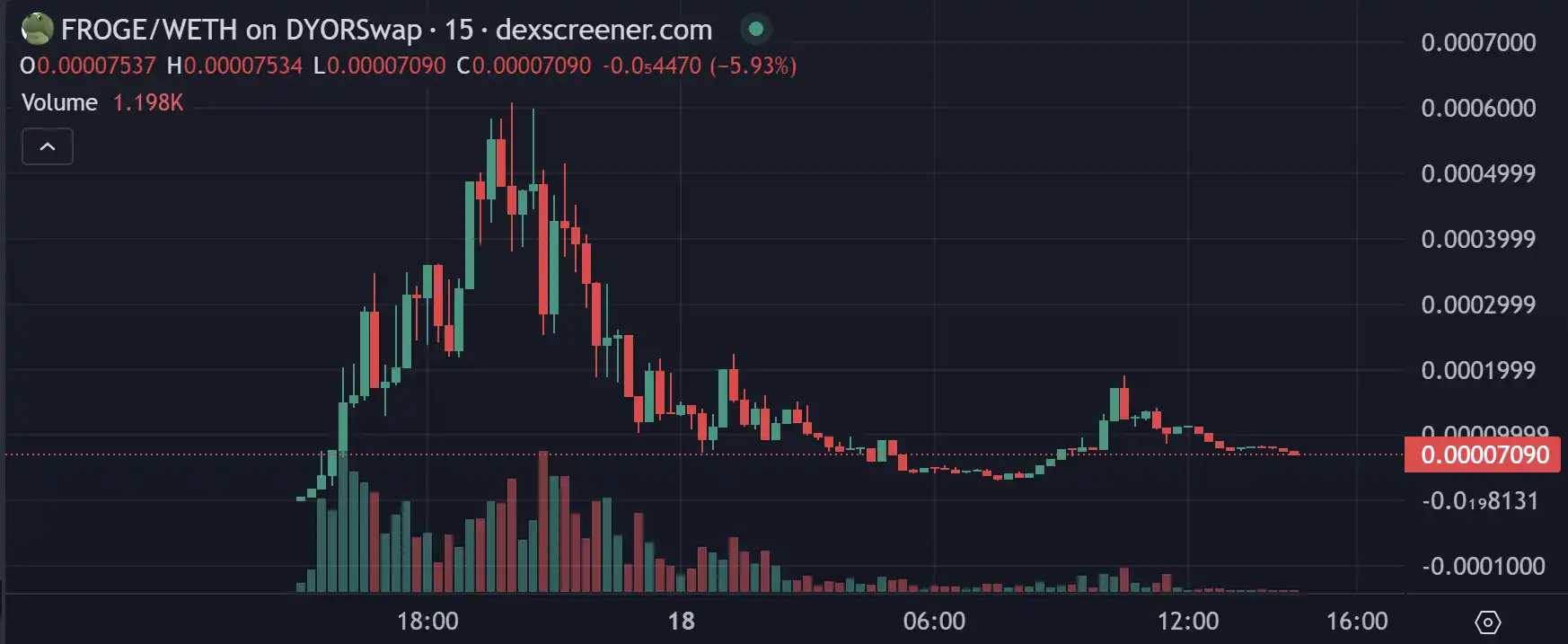 FROGE 24 小时涨幅高达 16149%,但是在今日逐渐回落,目前市值为 56.4 万美元