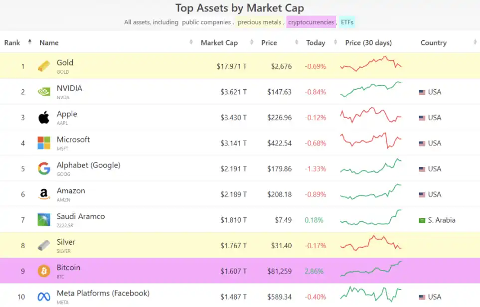 BTC 与其他主流资产市值类比:11 万到 22 万美元