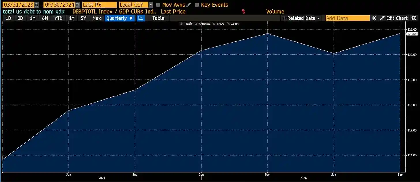 如果特朗普限制「脏乱差国家」的移民入境,这将进一步刺激经济活动,政府通过企业利润和工薪所得税获取收益。政府赤字保持较大以资助这些项目,财政部通过向银行出售债券来为政府提供资金。由于美联储或立法者暂停了补充杠杆比率,银行现在可以重新加大杠杆。普通工人、生产「合规」产品和服务的公司,以及看到债务与名义 GDP 比率下降的美国政府是赢家,这是一种「强化版的面向穷人的量化宽松」。
