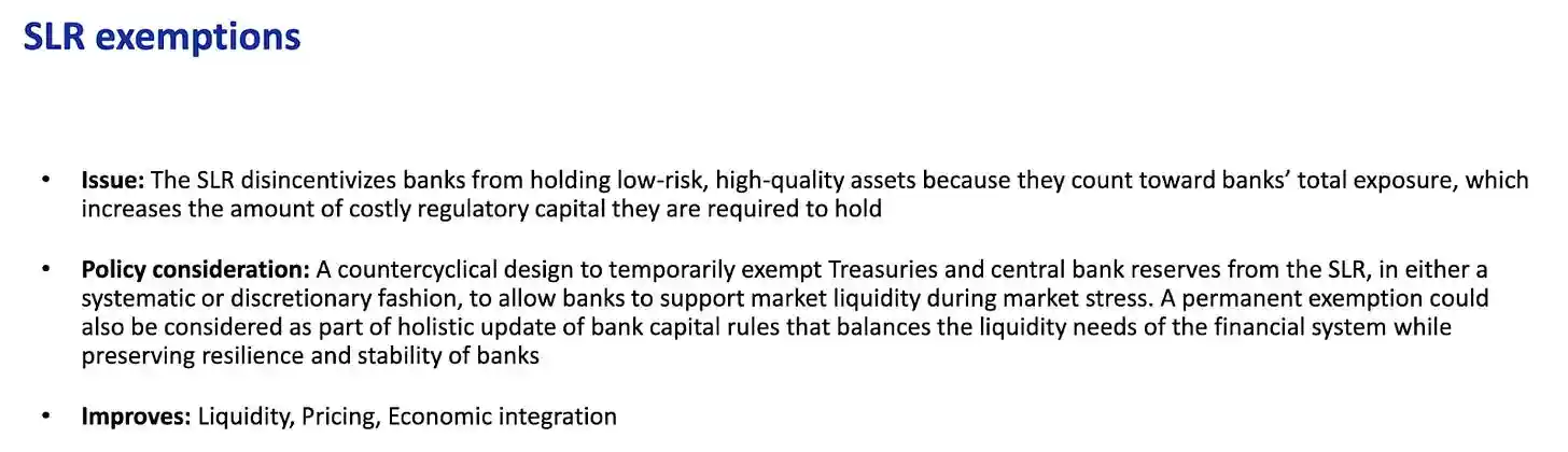 如果你还不确定财政部和美联储是否已经理解了银行监管松绑的必要性,TBAC 在这份报告的第 29 页明确写出了所需的措施: