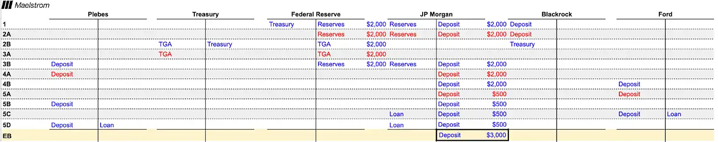2. 摩根大通帮助贝莱德将银行存款转换为美联储的储备金,用于购买国债。财政部在美联储的财政部一般账户(TGA)收到一笔存款,相当于一个支票账户。