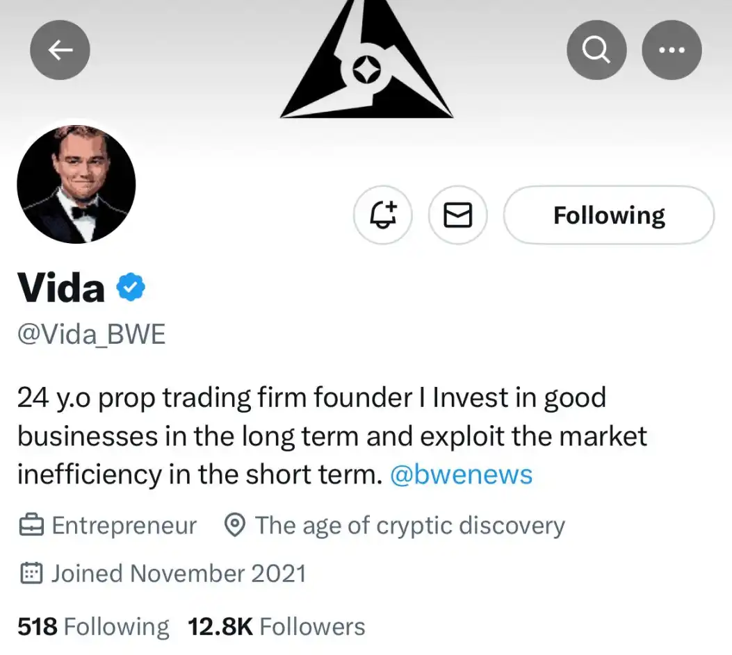 机会总是留给有准备的人,方程式新闻的创始人 Vida(他更知名的网名是「00 后富一代」)是知名的新闻交易员,据传已在上一轮通过新闻交易实现 A9。在有技术积淀的同时,他能最快买入也绝非巧合:
