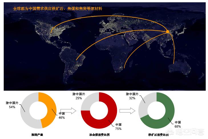 从上面的图中我们可以看出,铁矿石主要的生产区域在澳大利亚和南美的巴西,力拓和必和必拓、淡水河谷等主要全球矿上控制了70%左右的产量,所以在这个行业定价权基本在国外机构手里。中国的产量占比全球20%,但是由于我们国家的矿石品味较低,所以基于成本的考虑铁矿石原料基本以进口为主。