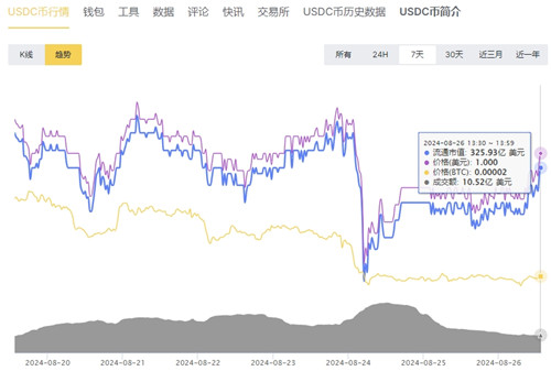 USDC (USDC)=$ 0.99960 $0.00010 0.01 % 实时数据截止至2024年8月26日下午13:35:22