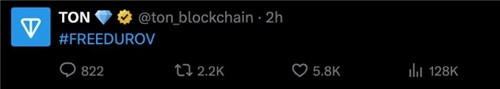 他还提到,TON的去中心化架构有助于巩固Telegram生态系的未来发展,并在推文中标注了「#FreePavel」以示支持。